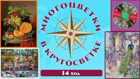 146 🍇Многоцветки в кругосветке (ход 14) 🎲 Натюрморт с тыквой/Полки/Красная рулетка/Павлин и голуби