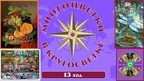 145 🍇Многоцветки в кругосветке (ход 13) 🎲 Натюрморт с тыквой/Полки/Стрекоза/Фиолетовая рулетка